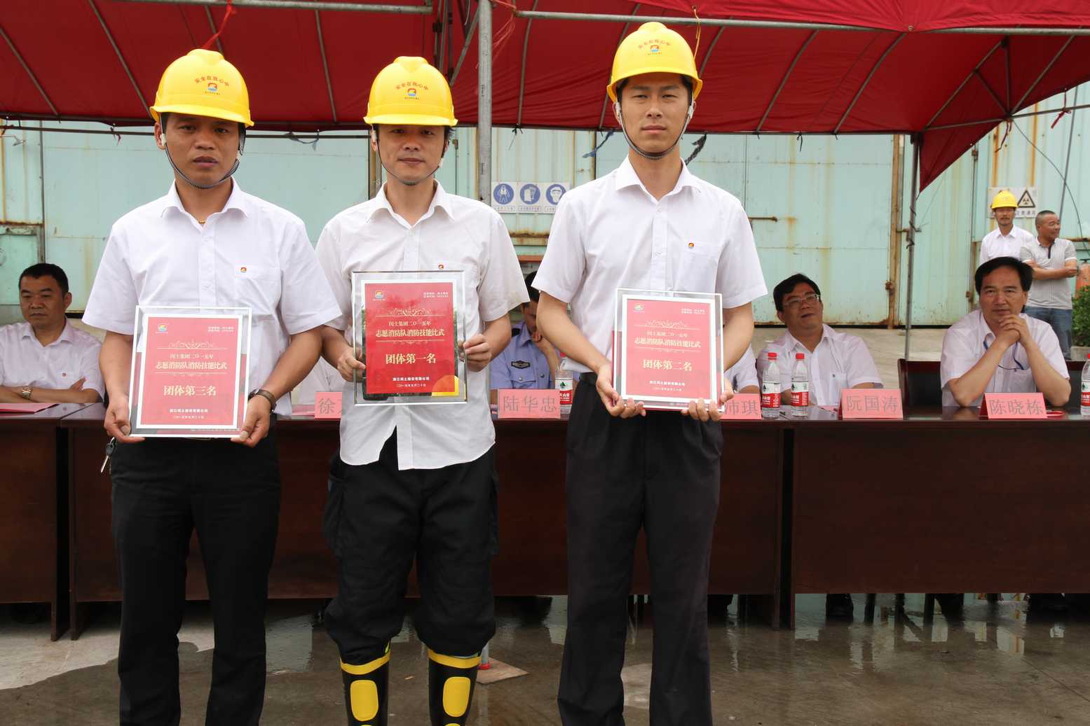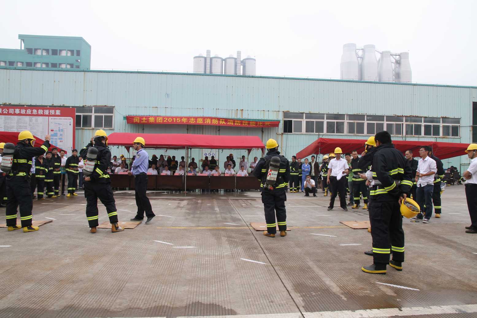 为迎接国家第十四个“安全生产月”,切实做好集团公司安全生产工作,不断提高公司各志愿消防队队员处置突发事件的应急救援能力和自防自救能力,5月20日上午,集团(股份)志愿消防队消防技能比武大赛在生态工业园内顺利举行。股份公司总经理徐万福、副总经理阮光栋、总经理助理傅沛琪、各子公司董事长、总经理等出席参加。