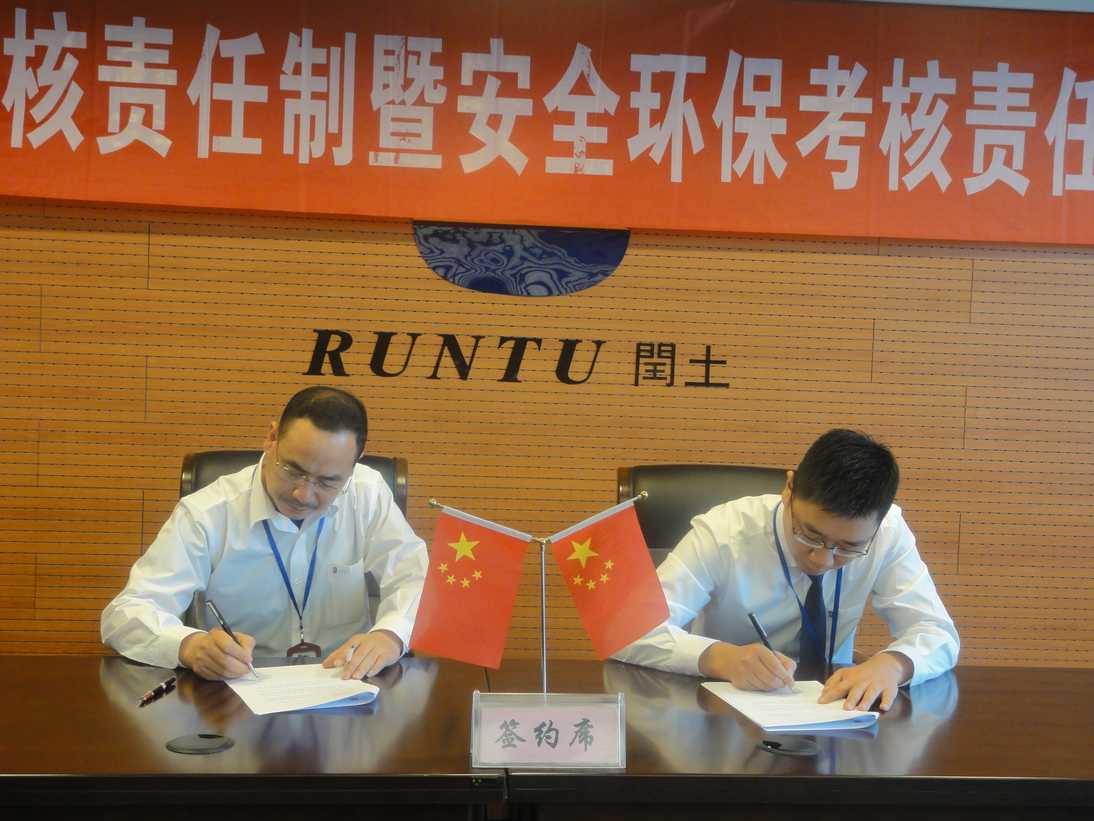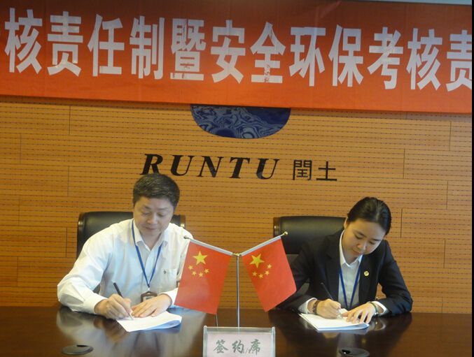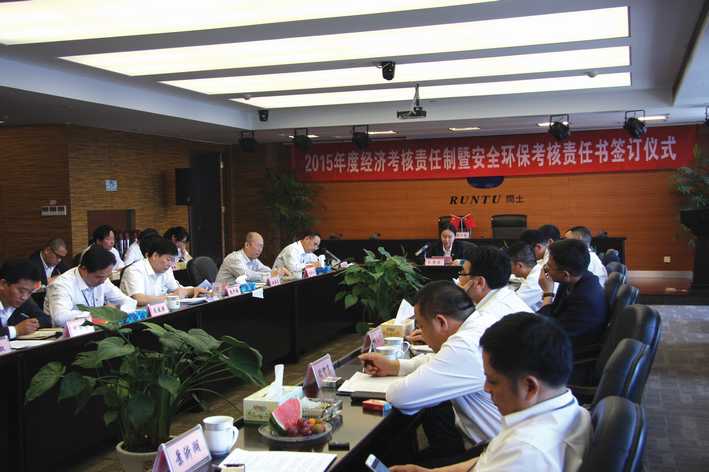 5月5日上午,2015年度经济考核责任制暨安全环保考核责任书签订仪式在大厦举行,会议由股份公司总经理徐万福主持。董事长阮静波、副董事长阮加春、副总经理阮光栋、各子公司董事长、总经理等出席签订仪式。