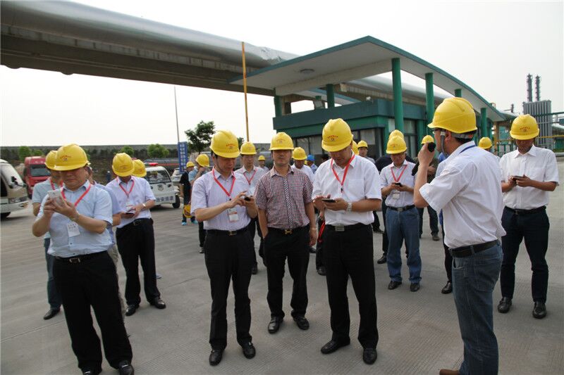 陈金彪书记一行进入生产一线后,积极配合现场管理要求,佩戴好安全帽、关掉手机。