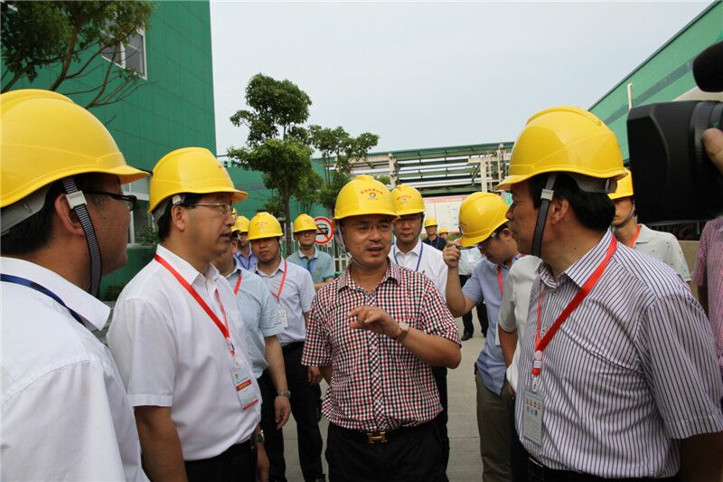 8月17日,由绍兴市委书记陈金彪(左三)带队的督查组到生态工业园内的新材料公司督查安全生产工作。陈金彪书记一行深入生产一线,了解企业危化品的储存、使用情况,详细询问了危化品的物理化学特征、紧急处置办法和应急预案,并听取了企业负责人关于生产工艺流程的介绍。陈书记对新材料公司的安全生产和危化品管理工作表示认可,并嘱咐企业一定要时刻紧绷安全生产这根弦,企业在抓效益的同时,更要抓好安全、环保工作。绍兴市副市长杨文孝、绍兴市上虞区区委书记孙云耀、绍兴市上虞区区委常委、杭州湾上虞经济技术开发区管委会主任胡文炜、绍兴市上虞区副区长王永表等领导,股份副董事长阮加春、股份副总经理阮光栋、新材料公司总经理周杰文等一起陪同。