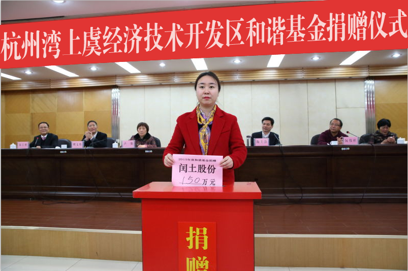 董事长阮静波出席杭州湾上虞经济技术开发区和谐基金捐赠仪式